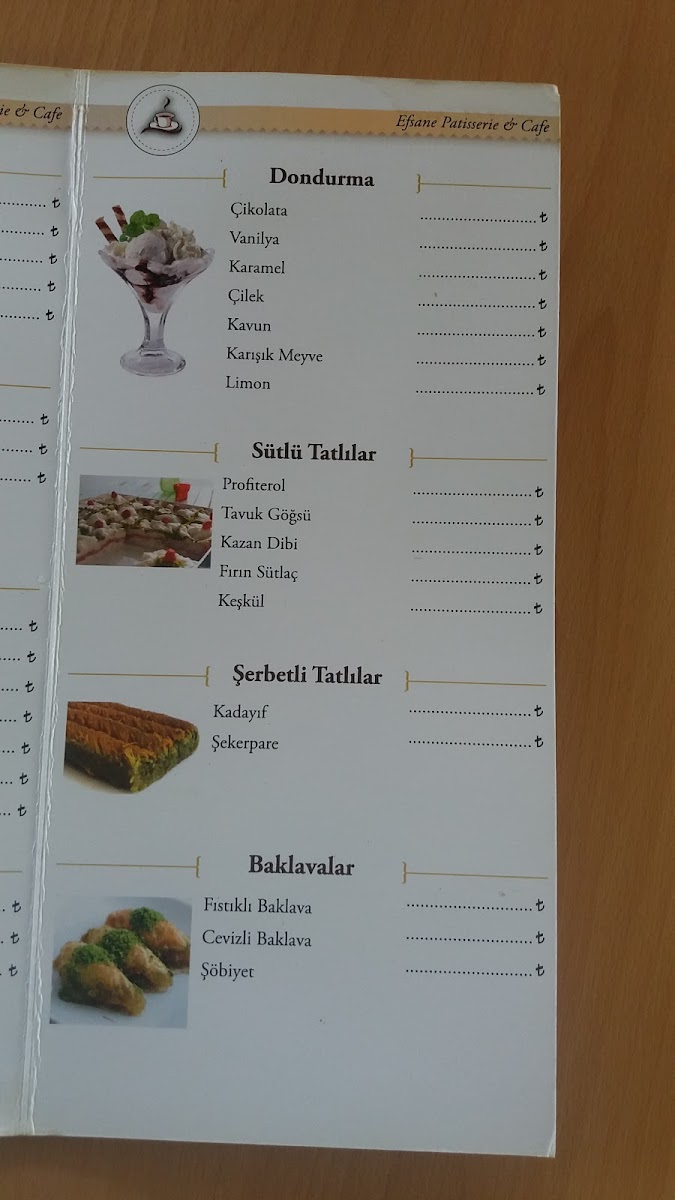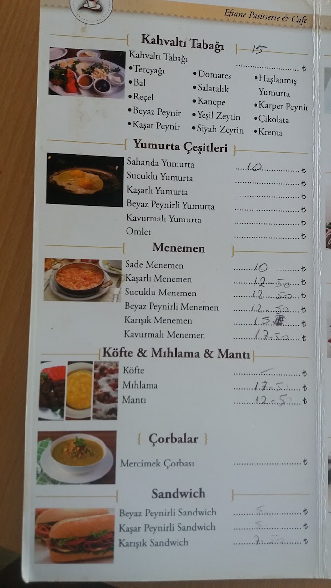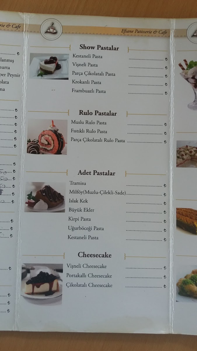 The menu at Efsane Pasta Cafe offers a variety of options typical for a cafe and cake shop setting. Visitors can expect selections that include fresh bakery items, cakes, and cafe-style beverages such as coffee and tea. The menu also features light food options suitable for quick meals or casual dining, including items like toasted sandwiches.
